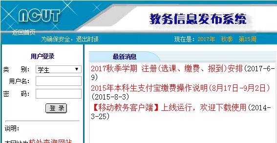 若在校内访问到此网站,点击此处查看解决方法。http://jxxx.ncut.edu.cn