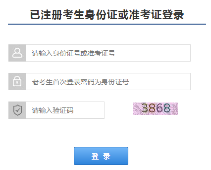 六、老考生凭身份证号或准考证号(首次登录初始密码为身份证号,身份证号最后一位是字母X的必须大写。登录成功后务必修改初始密码)直接登陆页面后选择考试地点和报考课程、交费,即可完成报考。