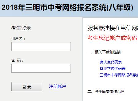 考生登录 三明市中考网络报名系统 三明市中考网络报名系统(八年级)