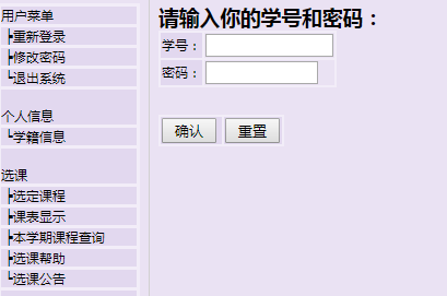 辽宁大学综合教务管理系统http://jwgl.lnu.edu.cn/ 考研网(25-12-23) http://jwgl.lnu.edu.cn/zhxt_bks/zhxt_bks.html 用户菜单 辽宁大学综合教务管理系统 ┝重新登录http://www.xuecan.net/bm/25762.html ┝修改密码 ┕退出系统 个人信息 ┕学籍信息 选课 ┝选定课程 ┝课表显示 ┝本学期课程查询 ┝选课帮助 ┕选课公告 成绩查询 ┝教学计划 ┝已修课程 ┝本学期成绩 ┝不及格课程 ┕成绩查询帮助 教学评估 ┕教学评估登陆