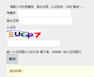 请输入你的考籍号、身份证号、认证码后,点击"查询"。。