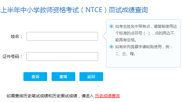 http://ntce.neea.edu.cn/中小学教师资格考试面试结果查询入口 上半年中小学教师资格考试面试结果将于2019年6月11日由教育部考试中心统一发布,查询网址为http://ntce.neea.edu.cn。面试成绩合格的考生自行通过网站打印网页版合格证明,提供给认定部门使用。