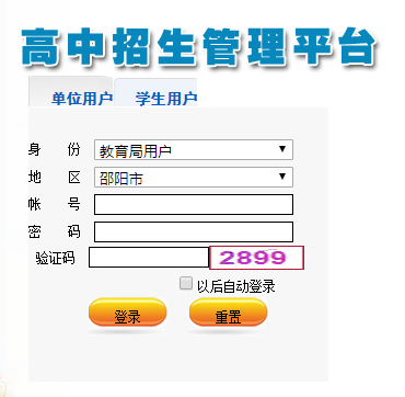 http://syzs.edumis.net/Home/UserLogin.aspx邵阳市教育局高中招生平台