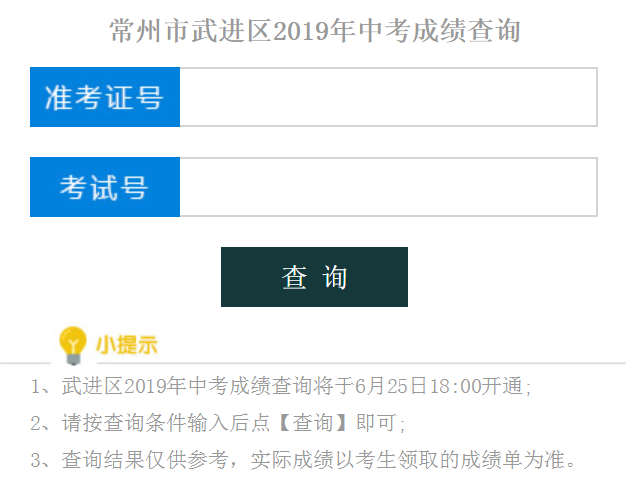 1、武进区2019年中考成绩查询将于6月25日18:00开通;