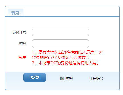 1、原有会计从业资格档案的人员初始密码为身份证后六位数;