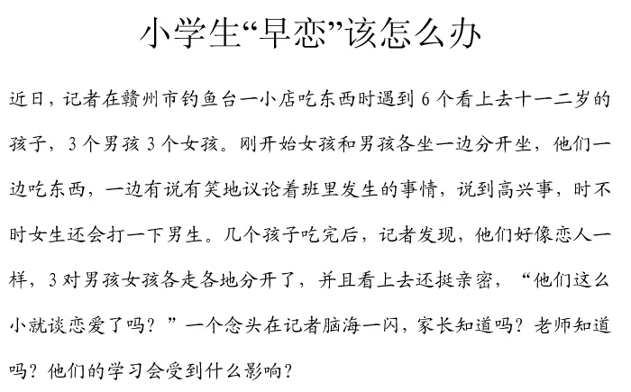 随着小孩子越来越早熟,接触到的网络世界也不尽相同,小学生早恋怎么办 如何预防小学生早恋?
