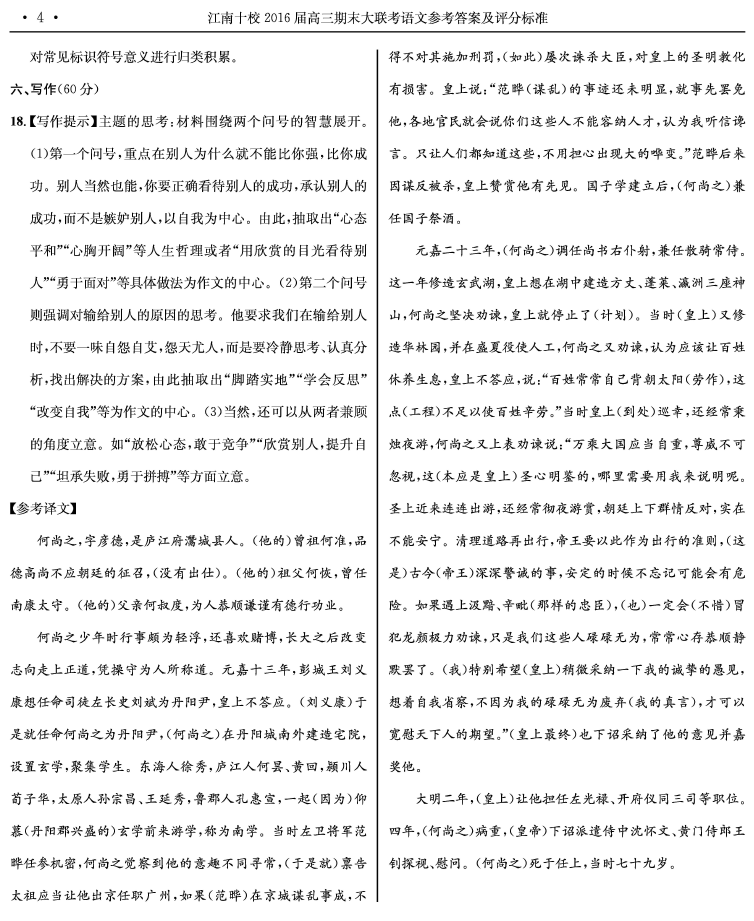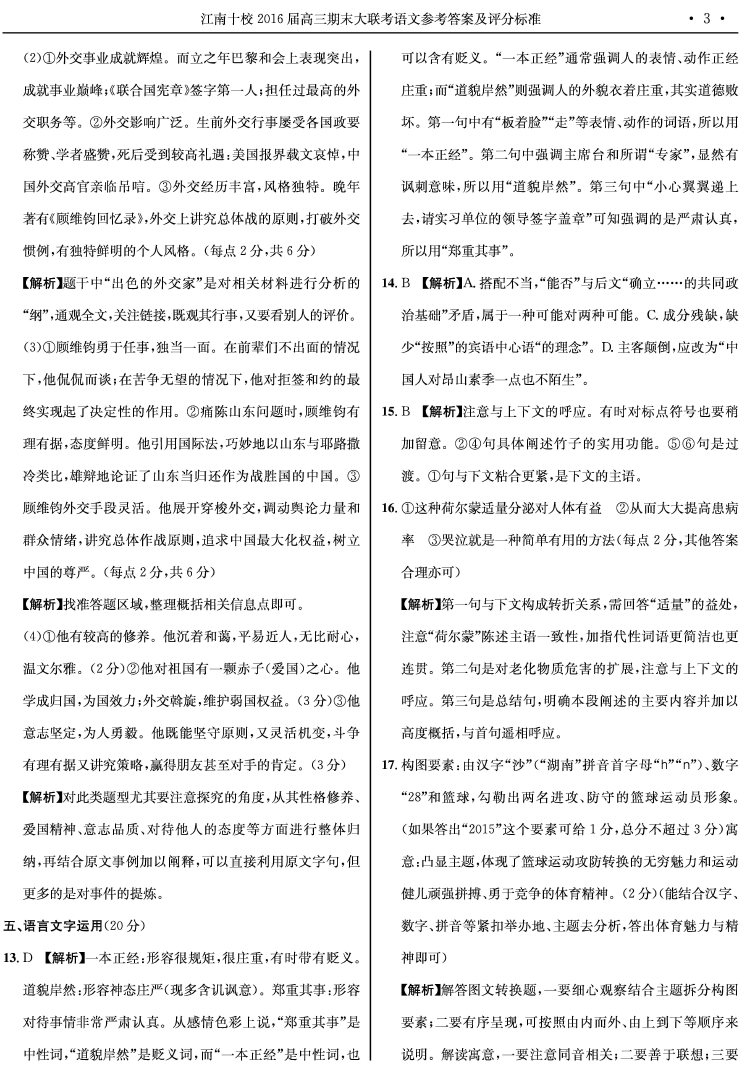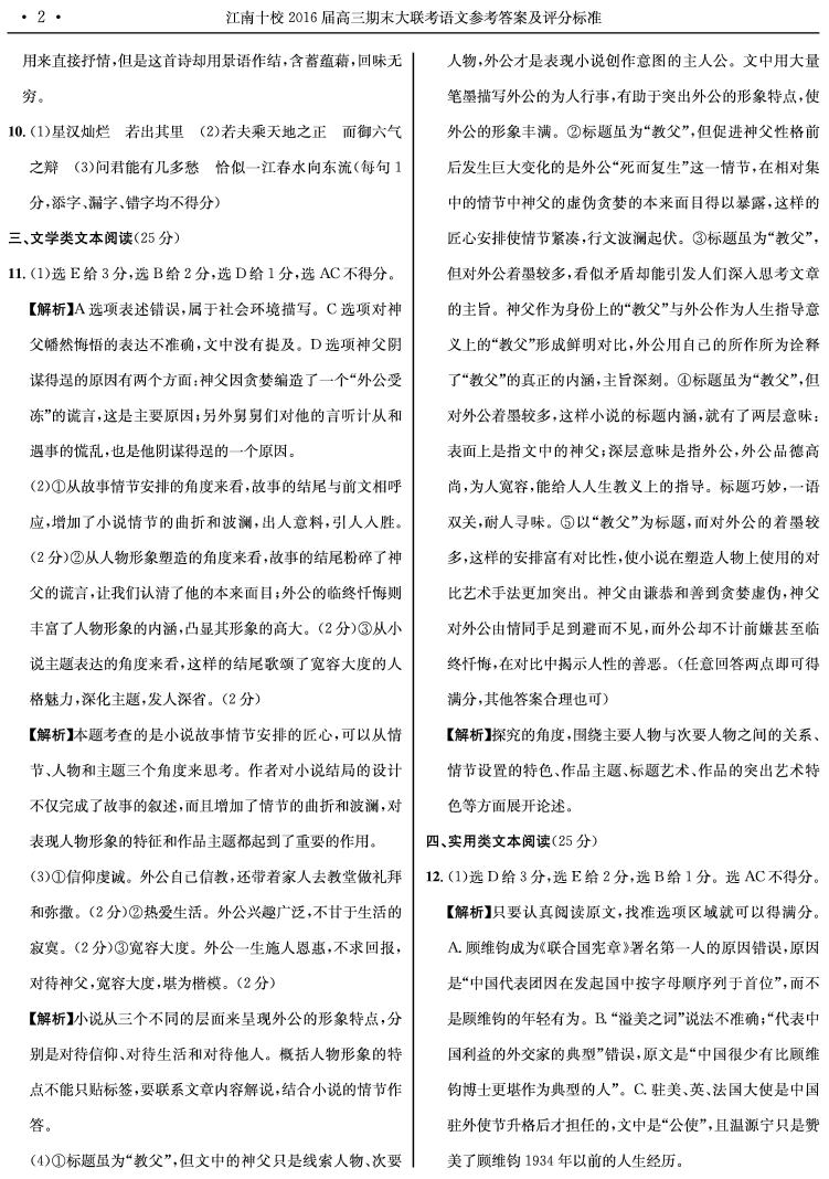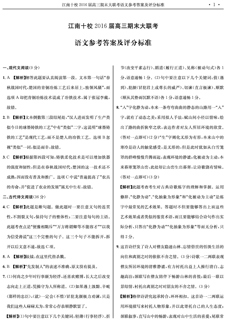 学参网整理分享江南十校2016届高三期末大联考语文试题答案