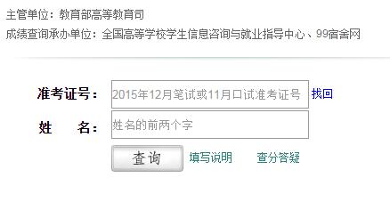 大学英语四六级考试(CET)成绩查询(非官方) 考研网(25-12-16) 全国大学英语四六级考试(CET) (非官方) 查分方式 详细说明 方式1 登录 方式2 登录中国高等教育学生信息网 方式3 登录教育部考试中心综合查询网查分网址:cet.99sushe.com 全国大学英语四、六级考试委员会办公室 主管单位:教育部高等教育司 成绩查询承办单位:全国高等学校学生信息咨询与就业指导中心