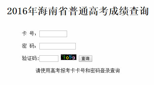 www.hnks.gov.cn/chengji/gkcj/海南省普通高考成绩查询 考研网(25-12-10) 2016年海南省普通高考成绩查询http://www.hnks.gov.cn/chengji/gkcj/ 卡 号: 密 码 验证码: 查询 请使用高考报考卡卡号和密码登录查询